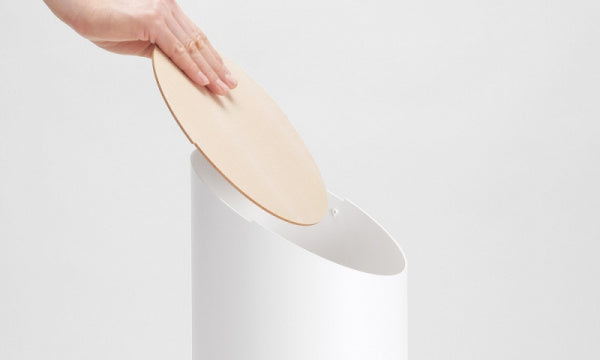 「今までにないエレガントなゴミ箱を作る」というコンセプトで作られたSWING BIN(スウィングビン)。限界まで不必要な要素をそぎ落とすことで、彫刻のような静寂さと美しさが生まれました。緻密なデザインにより、自らバランスを保ち回転する独特の蓋が特徴です。蓋は簡単に外せます。内部にゴミ袋を取り付けられます。※フタは天然木突板を使用していますので、気温、湿度の変化により多少の反りが発生します。