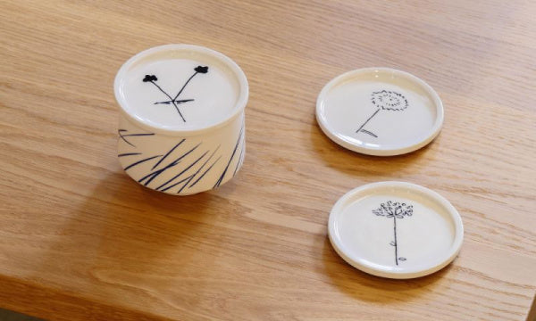 "少しだけ"、"ちょっとだけ"、そんなシーンで気軽に使える小皿「PIKKU」。(フィンランド語で"小さい")縁が垂直に立ち上がる形は、石本藤雄自身が細かい調整を経て生み出されました。絵柄は、石本藤雄が暮らしの中で欠かすことのない、可憐な花々。ヒメジオンは、2センチほどの菊のような愛らしい花。空き地や道路脇など、身近な場所で見られる花を描いています。シンプルで温かみのあるホワイトの色味は、他の洋食器とも馴染みやすく、一口菓子を載せたり、お茶を淹れたティーバッグレスト、食卓で豆皿として使うなど、さまざまな場面で活躍します。飲み口の内径7.5〜8cmのカップとは相性が良く、蓋やコースターにもなります。蓋として使えば、ラップいらずで食品の保存ができて、冷蔵庫でスタッキングしたり、蓋をしたままレンジで温め直しができて便利です。絵柄と同じ特製の箱に入れてお届けしますので、ギフトとしても喜ばれます。電子レンジ◯食洗器◯オーブン×直火×・サイズや風合いには若干の個体差がございます。・画面の色彩により実際の色・風合いが若干異なる場合がございます。