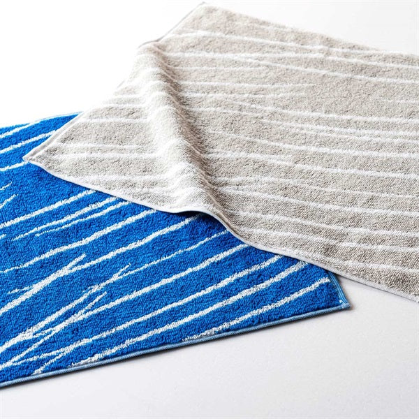 滑るように流れ落ちる渓流からインスピレーションを受けて、デザインされた「渓流」ゲストタオル。水の流れる姿をジャガード織で表現しました。それぞれのカラーは裏と表で色が反転され、使うたびに違った表情を見せてくれます。サイズは、ゲストとフェイスの2種類をご用意。バスルームを清々しく演出してくれます。フックにかけられるループ付き。「今治タオル工業組合」独自の品質基準に合格した、高品質のタオル商品であることを保証する今治タオルのブランドマークがついています。