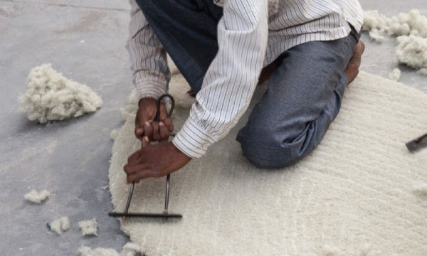 QUILLは生きた手仕事からインスピレーションをもらい、パラリ舞い落ちた1枚の羽のような繊細さと、複数あつまりを見せる遊動感と、使われ方で違った表情を見せます。重厚感を持った従来のカーペットのイメージを、より軽やかに、優しいデザインに、現代人の生活を意識しました。※裏面の糊剤にラテックス(合成ゴムの一種)を使用しており、ラテックスは熱により変色したり、硬化したりして劣化する性質を持っています。そのため、床暖房で裏面を加熱すると、裏面が硬くなったり、ラグを傷める原因になります。床暖房をご使用する場合は、本体と床の間に緩衝材などをお求め頂きご使用ください。※受注商品のため、ご注文後のキャンセルはご遠慮ください。