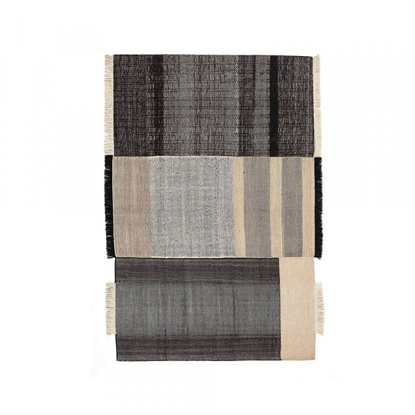 ナニマルキーナは職人技への情熱を持ち、特に古代の織り工芸品に経緯を表しています。トレスコレクションはそんなナニマルキーナの思いが反映されています。このコレクションでは、基本を取り戻し、細部の美しさを評価し、伝統を尊重することが望まれまれています。トレスは伝統的なインドの平織りのダーリラグで、異なる繊維が3つの独立したピース構成によってユニークな形をしています。ウール、フェルト、コットンのプロポーションと組み合わせにより、織りの色調や凹凸が変化し、パターンに命が吹き込まれます。フリンジがあることによりそれぞれのピースの構築プロセスを理解することができ、最終的に目に見えない形で混ざり合う3つのピースの区別をしています。※受注商品のため、ご注文後のキャンセルはご遠慮ください。