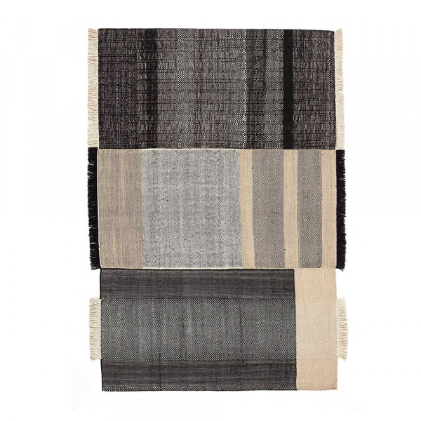 ナニマルキーナは職人技への情熱を持ち、特に古代の織り工芸品に経緯を表しています。トレスコレクションはそんなナニマルキーナの思いが反映されています。このコレクションでは、基本を取り戻し、細部の美しさを評価し、伝統を尊重することが望まれまれています。トレスは伝統的なインドの平織りのダーリラグで、異なる繊維が3つの独立したピース構成によってユニークな形をしています。ウール、フェルト、コットンのプロポーションと組み合わせにより、織りの色調や凹凸が変化し、パターンに命が吹き込まれます。フリンジがあることによりそれぞれのピースの構築プロセスを理解することができ、最終的に目に見えない形で混ざり合う3つのピースの区別をしています。※受注商品のため、ご注文後のキャンセルはご遠慮ください。
