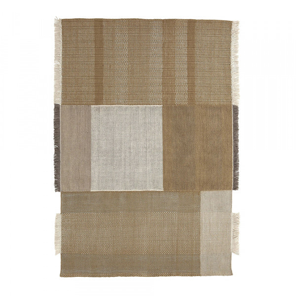 ナニマルキーナは職人技への情熱を持ち、特に古代の織り工芸品に経緯を表しています。トレスコレクションはそんなナニマルキーナの思いが反映されています。このコレクションでは、基本を取り戻し、細部の美しさを評価し、伝統を尊重することが望まれまれています。トレスは伝統的なインドの平織りのダーリラグで、異なる繊維が3つの独立したピース構成によってユニークな形をしています。ウール、フェルト、コットンのプロポーションと組み合わせにより、織りの色調や凹凸が変化し、パターンに命が吹き込まれます。フリンジがあることによりそれぞれのピースの構築プロセスを理解することができ、最終的に目に見えない形で混ざり合う3つのピースの区別をしています。※受注商品のため、ご注文後のキャンセルはご遠慮ください。