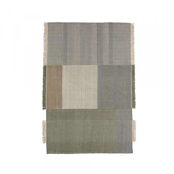 ナニマルキーナは職人技への情熱を持ち、特に古代の織り工芸品に経緯を表しています。トレスコレクションはそんなナニマルキーナの思いが反映されています。このコレクションでは、基本を取り戻し、細部の美しさを評価し、伝統を尊重することが望まれまれています。トレスは伝統的なインドの平織りのダーリラグで、異なる繊維が3つの独立したピース構成によってユニークな形をしています。ウール、フェルト、コットンのプロポーションと組み合わせにより、織りの色調や凹凸が変化し、パターンに命が吹き込まれます。フリンジがあることによりそれぞれのピースの構築プロセスを理解することができ、最終的に目に見えない形で混ざり合う3つのピースの区別をしています。※受注商品のため、ご注文後のキャンセルはご遠慮ください。