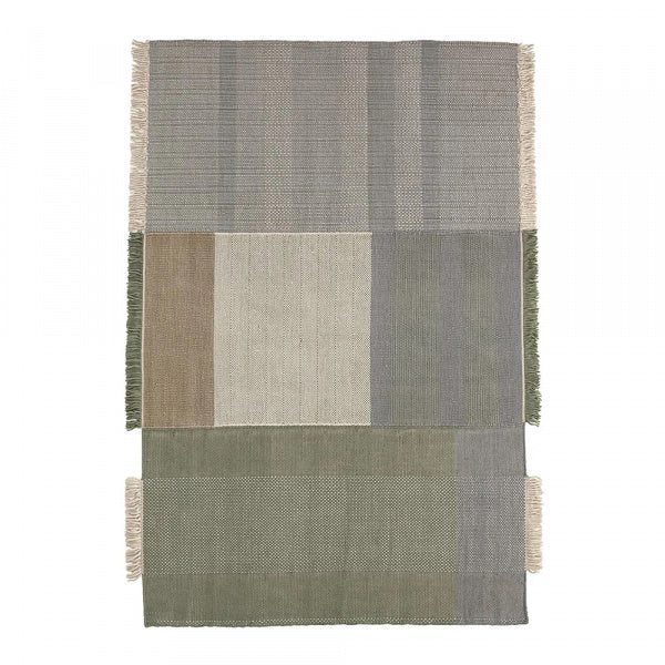 ナニマルキーナは職人技への情熱を持ち、特に古代の織り工芸品に経緯を表しています。トレスコレクションはそんなナニマルキーナの思いが反映されています。このコレクションでは、基本を取り戻し、細部の美しさを評価し、伝統を尊重することが望まれまれています。トレスは伝統的なインドの平織りのダーリラグで、異なる繊維が3つの独立したピース構成によってユニークな形をしています。ウール、フェルト、コットンのプロポーションと組み合わせにより、織りの色調や凹凸が変化し、パターンに命が吹き込まれます。フリンジがあることによりそれぞれのピースの構築プロセスを理解することができ、最終的に目に見えない形で混ざり合う3つのピースの区別をしています。※受注商品のため、ご注文後のキャンセルはご遠慮ください。
