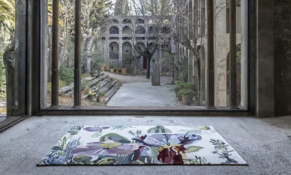 バルセロナのアーティスト、サンティ モイスによる、色彩豊かなコレクション。生物形態の花を通じて、生と死の間の平行性を探求する作品となっています。彼の使用する色は単なる装飾を超えており、花の誕生前の瞬間、色の爆発、朽ちていく姿などの中間プロセスに特別な注意を払って表現されています。バックヤードは、花が壮観なスケールで荒々しくバックヤードに咲いている様子を表現した作品を、鉛筆画のニュアンスまでも可能な限り忠実にラグに表しています。※裏面の糊剤にラテックス(合成ゴムの一種)を使用しており、ラテックスは熱により変色したり、硬化したりして劣化する性質を持っています。そのため、床暖房で裏面を加熱すると、裏面が硬くなったり、ラグを傷める原因になります。床暖房をご使用する場合は、本体と床の間に緩衝材などをお求め頂きご使用ください。※受注商品のため、ご注文後のキャンセルはご遠慮ください。