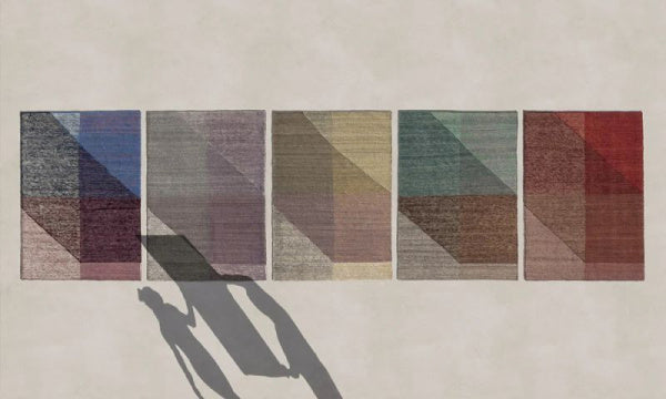 マティアス ハーンによるキャパスコレクションは、色、色調、影のレイヤーに重点を置いており、その出発点は、影が黒やグレーではなく、色と幾何学に満ちているという彼の概念です。彼の目的は、色の使用と奥行きの形成が複雑でありながら、カジュアルな雰囲気のシンプルで軽いラグを作成することでした。これを達成するために、ナニマルキーナとハーンは、色を分配する新しいキリム織りの技術を熱心に研究しました。数ヶ月後、縦糸と横糸の色を混ぜることができる新しいタイプの緩いキリム構造を開発しました。通常、キリムでは縦糸は見えません。繊維を緩め、より太い縦糸を使用することで、新しい色と質感を目に見えるようにし、より深みと強化されたトーンが誕生します。独特の風合いが重くならずに、濃淡の効果と深みを生み出します。光を反射して影を落とす大気中の空気の層のように。色はキャパスコレクションの中心的要素です。各ラグにはメインカラー、補完的なトーン、そしてそのくらいグラデーションがあり、床に影を落としているような錯覚を与えます。※受注商品のため、ご注文後のキャンセルはご遠慮ください。