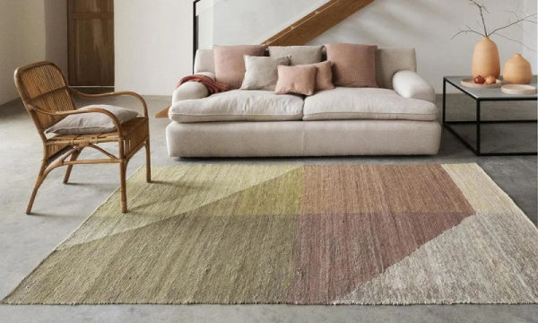 マティアス ハーンによるキャパスコレクションは、色、色調、影のレイヤーに重点を置いており、その出発点は、影が黒やグレーではなく、色と幾何学に満ちているという彼の概念です。彼の目的は、色の使用と奥行きの形成が複雑でありながら、カジュアルな雰囲気のシンプルで軽いラグを作成することでした。これを達成するために、ナニマルキーナとハーンは、色を分配する新しいキリム織りの技術を熱心に研究しました。数ヶ月後、縦糸と横糸の色を混ぜることができる新しいタイプの緩いキリム構造を開発しました。通常、キリムでは縦糸は見えません。繊維を緩め、より太い縦糸を使用することで、新しい色と質感を目に見えるようにし、より深みと強化されたトーンが誕生します。独特の風合いが重くならずに、濃淡の効果と深みを生み出します。光を反射して影を落とす大気中の空気の層のように。色はキャパスコレクションの中心的要素です。各ラグにはメインカラー、補完的なトーン、そしてそのくらいグラデーションがあり、床に影を落としているような錯覚を与えます。※受注商品のため、ご注文後のキャンセルはご遠慮ください。