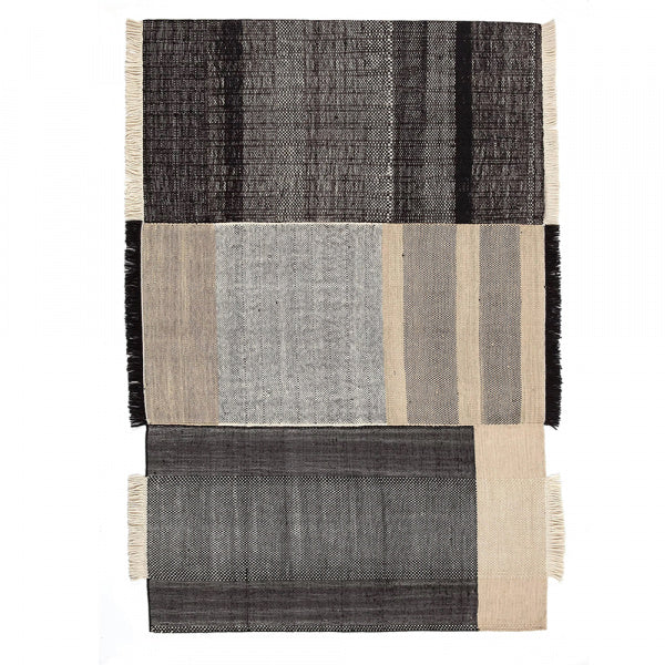 ナニマルキーナは職人技への情熱を持ち、特に古代の織り工芸品に経緯を表しています。トレスコレクションはそんなナニマルキーナの思いが反映されています。このコレクションでは、基本を取り戻し、細部の美しさを評価し、伝統を尊重することが望まれまれています。トレスは伝統的なインドの平織りのダーリラグで、異なる繊維が3つの独立したピース構成によってユニークな形をしています。ウール、フェルト、コットンのプロポーションと組み合わせにより、織りの色調や凹凸が変化し、パターンに命が吹き込まれます。フリンジがあることによりそれぞれのピースの構築プロセスを理解することができ、最終的に目に見えない形で混ざり合う3つのピースの区別をしています。※受注商品のため、ご注文後のキャンセルはご遠慮ください。