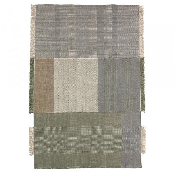 ナニマルキーナは職人技への情熱を持ち、特に古代の織り工芸品に経緯を表しています。トレスコレクションはそんなナニマルキーナの思いが反映されています。このコレクションでは、基本を取り戻し、細部の美しさを評価し、伝統を尊重することが望まれまれています。トレスは伝統的なインドの平織りのダーリラグで、異なる繊維が3つの独立したピース構成によってユニークな形をしています。ウール、フェルト、コットンのプロポーションと組み合わせにより、織りの色調や凹凸が変化し、パターンに命が吹き込まれます。フリンジがあることによりそれぞれのピースの構築プロセスを理解することができ、最終的に目に見えない形で混ざり合う3つのピースの区別をしています。※受注商品のため、ご注文後のキャンセルはご遠慮ください。