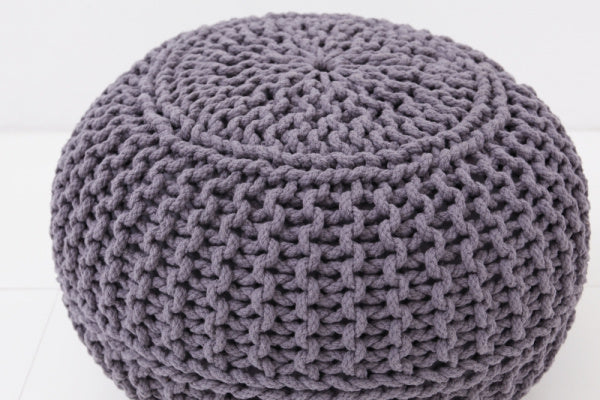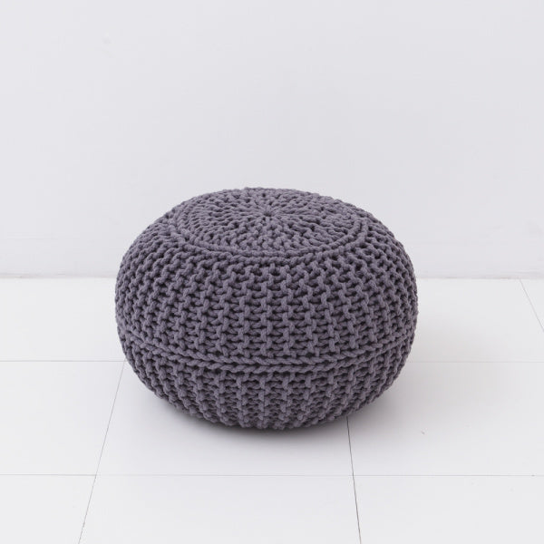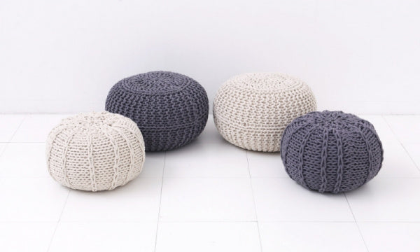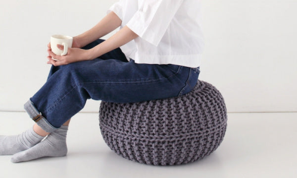 来客時のクッション、またソファのオットマンとして使えるインドのニットプーフ。100%綿を使っているのでオールシーズン使用できます。【サイズが大きいためラッピングは出来ません。】 ※商品のクリーニングの際に石油系溶剤が使われているため、開封時に少し油のようなにおいがあります。最初に風通しのよい場所に置くと匂いが薄らいでいきます。においに敏感な方は予めご了承ください。※現地職人による手編みの商品につき若干の個体差があります。※編まれた紐の部分のみを引くと、ほつれが出たり外れたりする場合がございます。全体を持って持ち運びください。※洗濯機使用不可。カバー取り外しはできません。部分的な汚れが付いてしまった場合は拭き取ってご使用ください。