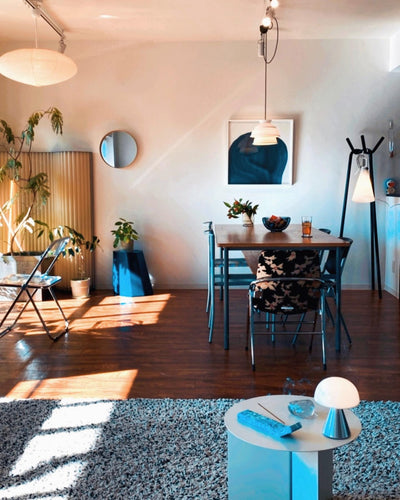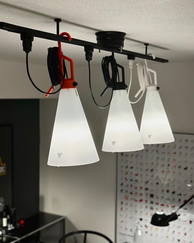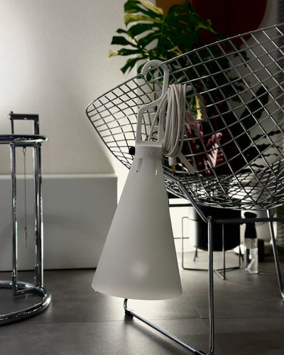 「MAYDAY」はMOMAのパーマネントコレクションにもなっている秀逸な持ち運び可能ランプです。4.8mのコードは取手に巻き取れるので電源から離れた場所にも照明を持ち出すこともできます。テラスや車の整備などで使ってみても面白い、様々な用途に対応するカジュアルな照明です。取手はフックとしても使用することができ、ハンガーや樹に引っ掛けたり、テーブルやデスクの上に吊り下げてぺンダントライトとして、また床やテーブルの上に置いてマスコットスタンドとして、壁やカーテンレールに引っ掛けてブラケットライトとして・・・など手軽に使うことができます。