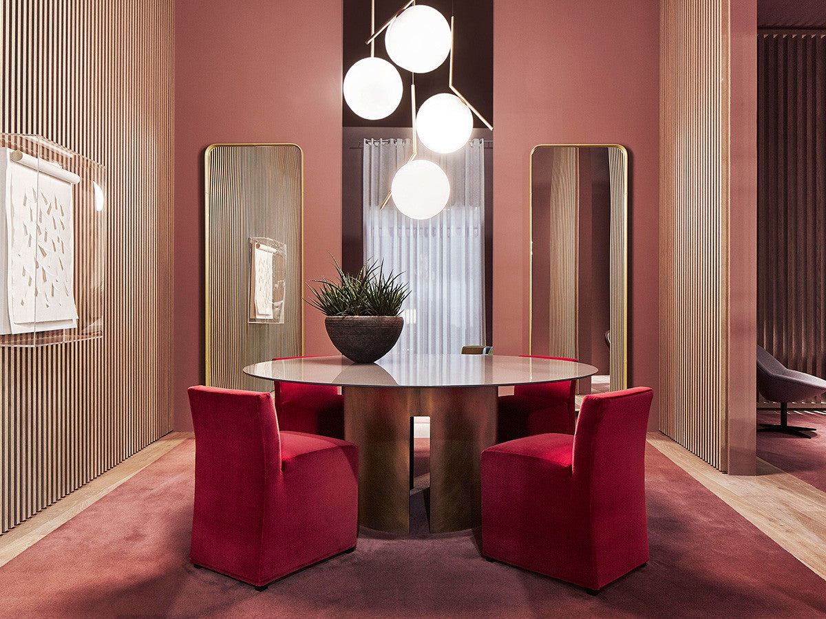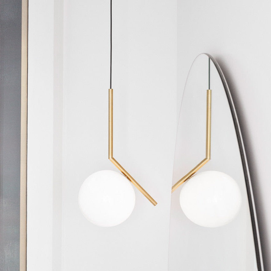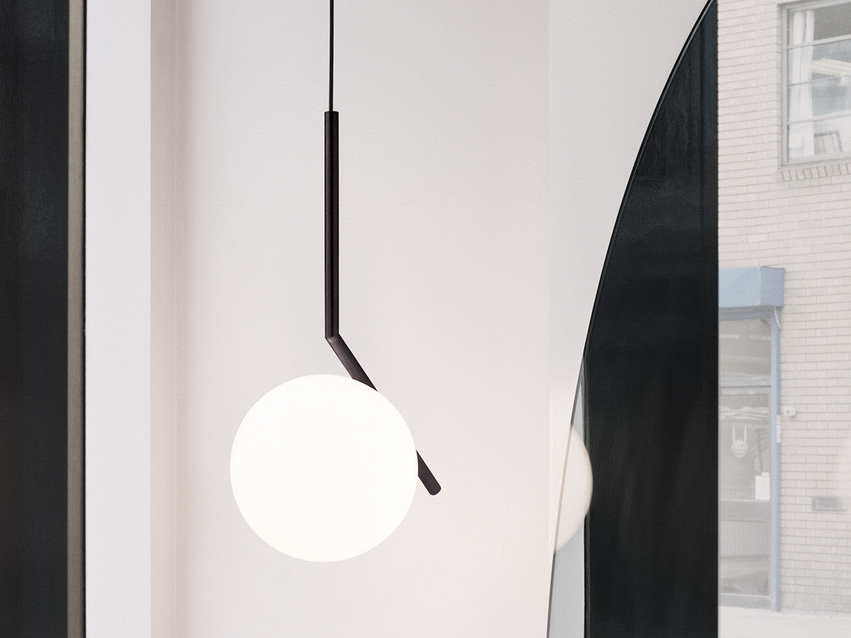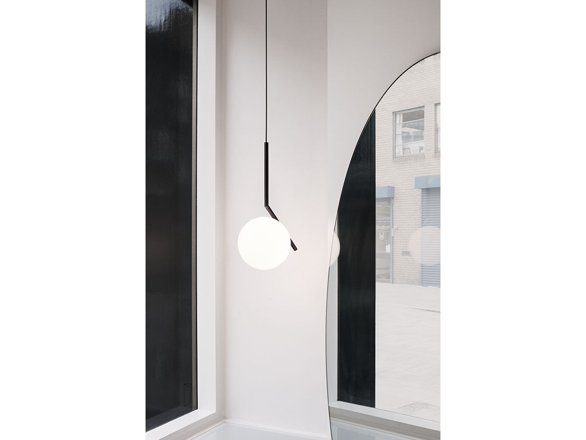 乳白色のガラスの球形が細い棒の上を転がるように配置された「IC Lights」。マイケル・アナスタシアデスがコンタクトジャグリングの名手トニー・ダンカンのショートフィルムにインスピレーションを受けデザインされました。ネーミングの「IC」は、英国入国管理局が用いる移民を分類する識別コードから名付けられたもの。斜面を離れて転がらない球形のように絶妙なバランスを保ったデザインは、アナスタシアデス自身の外国人としての固有なバランスやアイデンティティの不安定な平衡を表現しています。