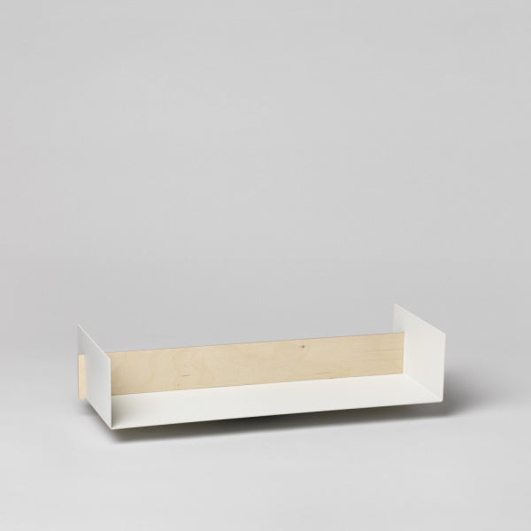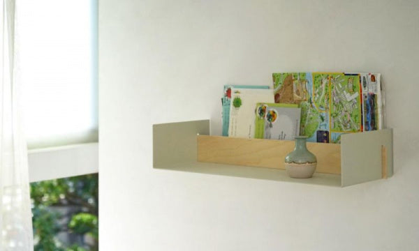 BEAMはシンプルなメタルシェルフ(壁付け棚 ウォールシェルフ)です。木の仕切り板(取り外し可能)がついているので、写真、ポストカード、雑誌などを壁側に立てかけて、手前に別の物を置くことができます。また、木の板があることで温かい印象になり、さらに、壁の取り付け部分を隠してくれます。※取り付けの際は壁面に穴を開け、アンカーを差し込みネジで固定します。壁面に取り付ける際は壁の材質をお確かめください。壁面が石膏ボードの場合は専用のアンカーをご用意ください。