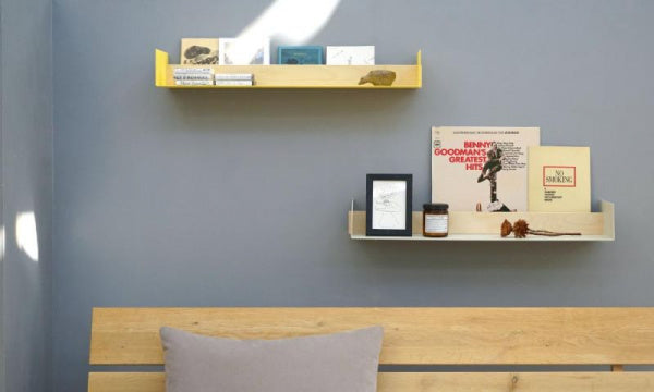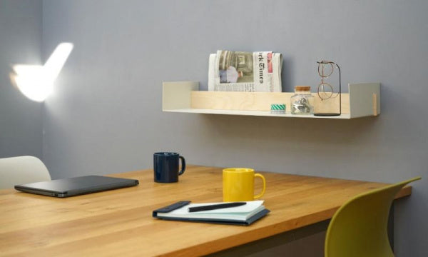 BEAMはシンプルなメタルシェルフ(壁付け棚 ウォールシェルフ)です。木の仕切り板(取り外し可能)がついているので、写真、ポストカード、雑誌などを壁側に立てかけて、手前に別の物を置くことができます。また、木の板があることで温かい印象になり、さらに、壁の取り付け部分を隠してくれます。※取り付けの際は壁面に穴を開け、アンカーを差し込みネジで固定します。壁面に取り付ける際は壁の材質をお確かめください。壁面が石膏ボードの場合は専用のアンカーをご用意ください。