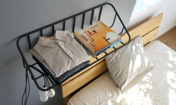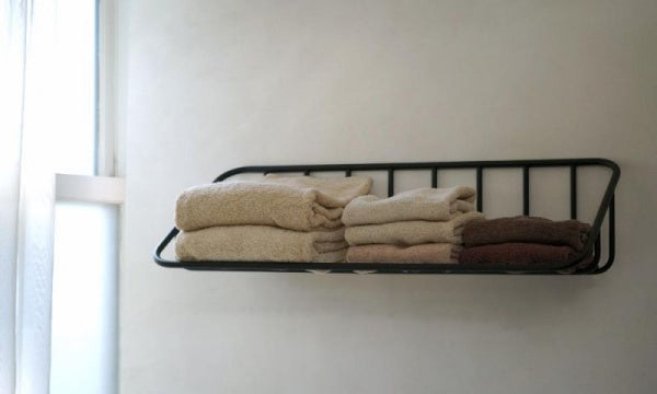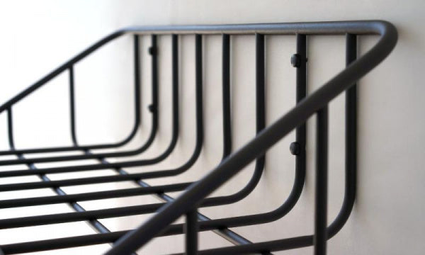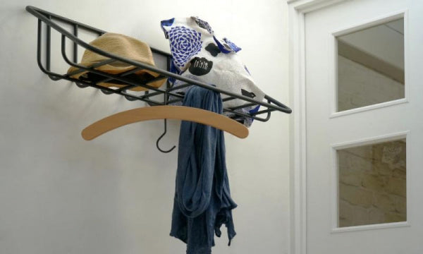 CATCH-ALLは多目的に使えるスチールシェルフです。帽子、手袋やスカーフを置いたり、コートを掛けたり、シューズラックとして使用するために下に設置する使い方もあります。取り付けの際は壁面に穴を開け、アンカーを差し込みネジで固定します。壁面に取り付ける際は壁の材質をお確かめください。壁面が石膏ボードの場合は専用のアンカーをご用意ください。