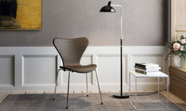 バウハウスのメタル工房の主任を勤めていたドイツ人のクリスチャン・デルは、1926年のはじめ、ランプ工場であったGebr. Kaiser & Co. のための照明のデザインをしました。中でも1936年にテーブルランプ6631Luxusが掲載されたカタログが発行され、すぐにカイザー・イデルの人気商品となりました。フロアランプ 6580-F Luxusは、ボールジョイント構造のシェードのスタイリッシュでインダストリアルなデザインが投影された、調整可能なベース搭載のモデルです。コード長:2m。コードカラー:ブラック【1936年デザイン】※電球は同梱されておりません。