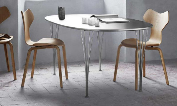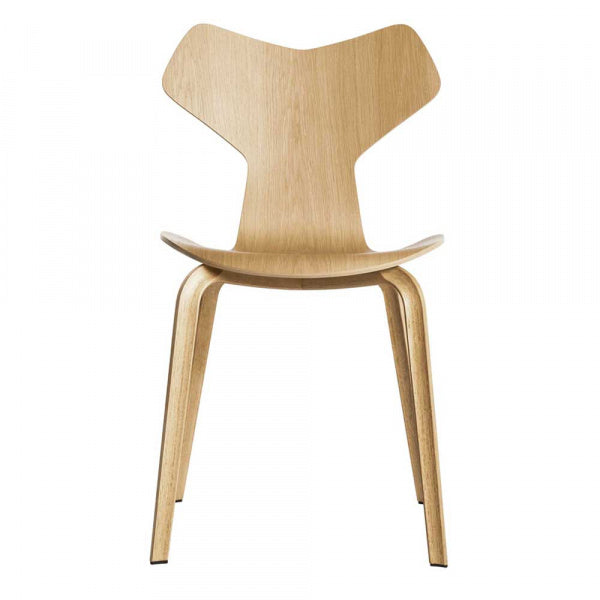 グランプリチェアは、1957年、コペンハーゲンのデンマーク工芸博物館で開催された春の展示会にてフリッツ・ハンセンにより初公開されました。同年中にミラノ・トリエンナーレに出品され、この展覧会の最高賞であるグランプリを獲得しました。グランプリチェアのウッドレッグは、ヤコブセンのほかの成形合板のチェアのスチールベースにならって、滑らかに角度を描きながら広がります。このモデルは、ヤコブセンがデザインしたもののなかでも珍しい、ウッドレッグの椅子です。ウッドレッグ仕様のグランプリチェアは、スタッキングできません。デンマークのFRITZ HANSEN(フリッツ・ハンセン)社の商品です。【1958年デザイン】