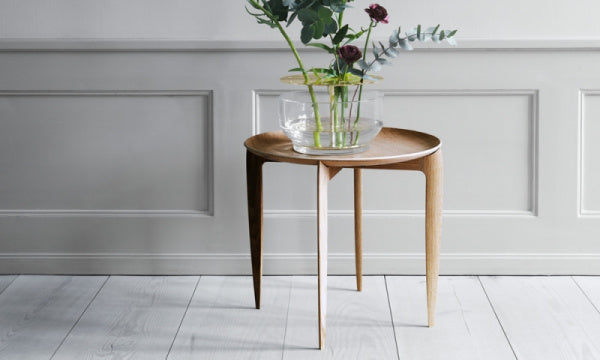 このエレガントなトレイテーブルは、1958年にヴィスムセンとエンゲホルムのデザインにより制作されました。両人ともフリッツ・ハンセンで働く優秀な家具職人でした。このテーブルは二人が才能あるデザイナーでもあったことを証明しています。デンマークのFRITZ HANSEN(フリッツ・ハンセン)社の商品です。【1958年デザイン】トレイ:スウェーデン製 脚:リトアニア製