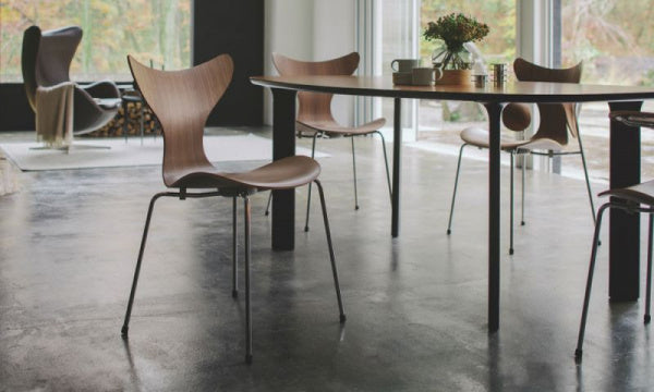 リリーはアルネ・ヤコブセンによりデンマーク国立銀行のためにデザインされたチェアです。最初のモデルである3108は1968年に誕生し、1970年のデンマーク国際家具見本市でアーム付きの3208モデルが初公開されました。完璧な曲線を備え、快適な座り心地を提供するリリーは、薄くスライスしたベニヤをラミネート加工するという非常に複雑な成形合板技術の集大成といえます。ヤコブセンがデザインした最後のチェアであるリリーの50周年を記念して、ナチュラルウッドモデルをウォルナットで復刻します。デンマークのFRITZ HANSEN(フリッツ・ハンセン)社の商品です。【1970年デザイン】