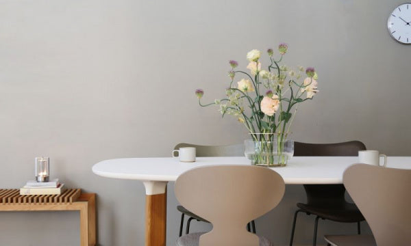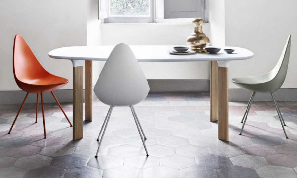 テーブルは複数の機能を同時に満たすべきだというアイデアから、家族が集まり、食事をし、本を読み、仕事をする・・・そして座る人みんなの顔が見える特徴的なフォルムの天板と、たとえテーブルのコーナーであっても座ることができるよう考慮したレッグのダイニングテーブルです。【2014年デザイン】