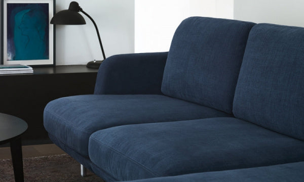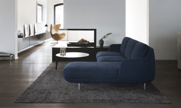 モジュールソファ「Lune」に見られる彫刻を連想させるような曲線状のフォルムは、ハイメ・アジョンのデザインの特徴です。北欧的な曇りのない美的センスと南欧的なエレガンスの融合を追い求めるハイメ・アジョンがデザインを手がけた今回のLuneには、フリッツ・ハンセンが誇る定評のあるハイクオリティの中に遊び心が感じられます。機能的なモジュール・システムにより、ストレートなツー・シーター(二人用ソファ)からL字型多人数用ソファに至るまで無限の組み合わせが可能で、シェーズ・ロングを選ぶこともできます。また、この様々な組み合わせを可能にするモジュール・システムにハイメ・アジョンならではの独特な美的センスが加味されたことにより、Luneは座り心地が非常に快適なだけでなく、どのアングルから見ても美しいソファになっています。【ファブリック:Linara 2494/30 インディゴ レッグ:アルミニウム】