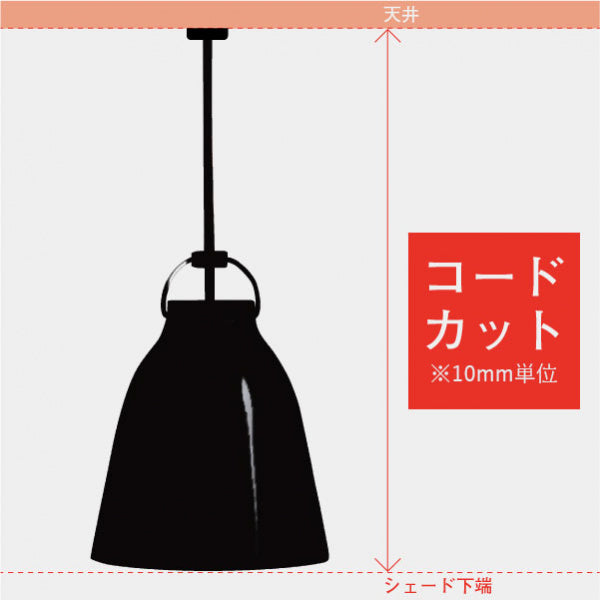 コードカットをご希望の際は、こちらの商品をカートに入れて頂き、「ご購入手続き」の備考欄に、天井からのシェード下端までの全長を明記してください。1センチ単位でご指定可能です。シェードを除いたコードの長さでの指定はお受けできませんので