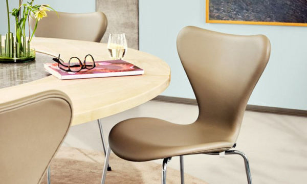 エッセンシャルレザー(ライトグレー)とクローム脚の組み合わせのセブンチェアです。もともと座り心地の良いチェアとして定評があるセブンチェアに、レザーを張り込むことで座り心地が格段にアップします。革について:ひとつひとつ違う表情となり、天然素材特有のシワがあったり、質感も異なる場合がございます。唯一無二のお品が味わえるのも革の大きな魅力となっておりますので、ご理解の上、ご購入頂きますようお願いいたします。デンマークのFRITZ HANSEN(フリッツ・ハンセン)社の商品です。【1955年デザイン】
