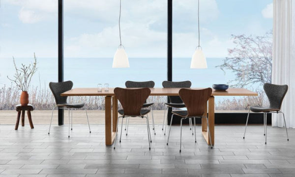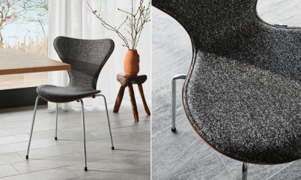 時が経っても色褪せない一つひとつの製品には、卓越したクラフツマンシップ、最高級の素材、時の試練に耐えられるデザインに対するフリッツ・ハンセンのコミットメントが投影されています。セブンチェアには、ウォルナットの成形合板とグラナイトブラウンの色調が美しいクヴァドラ社の新作ウール混ファブリック・Vanir(ヴァニール)のフロントパディングモデルが登場します。アニバーサリーコレクションのセブンチェアには、一脚ごとにアニバーサリープレートが付属します。【1955年デザイン】