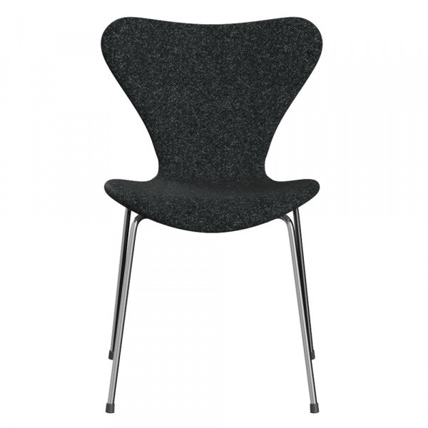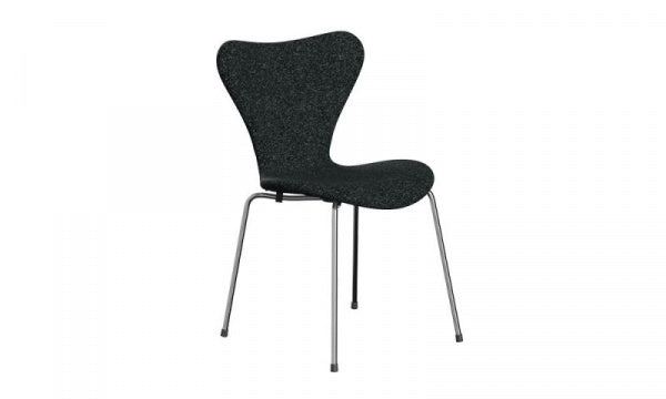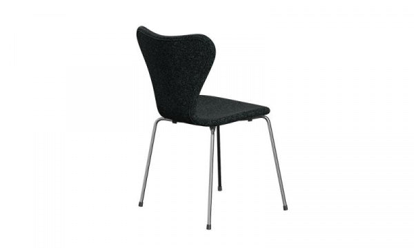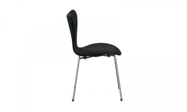 ファブリック Vanir193(ブラック)とクローム脚の組み合わせのセブンチェアです。もともと座り心地の良いチェアとして定評があるセブンチェアに、ファブリックを張り込むことで座り心地が格段にアップします。Vanirの美しいパターンは、縦糸と横糸にそれぞれ違う色を使用することで生まれ、極上の柔らかさを備えたウールファブリックです。張り地は座面と背面共に摩耗と寿命を考慮し最大限の注意を払い張り込まれています。デンマークのFRITZ HANSEN(フリッツ・ハンセン)社の商品です。【1955年デザイン】