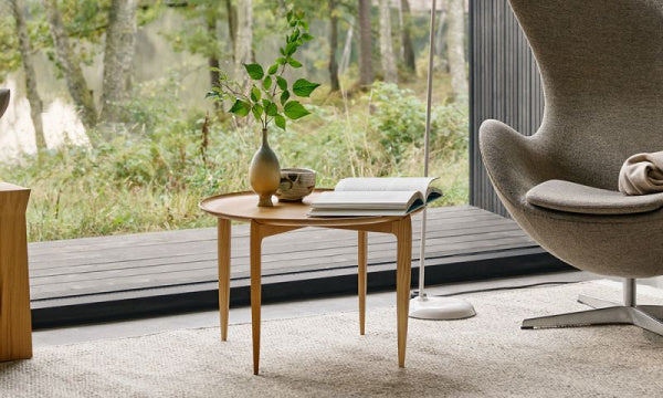 このエレガントなトレイテーブルは、1958年にヴィスムセンとエンゲホルムのデザインにより制作されました。両人ともフリッツ・ハンセンで働く優秀な家具職人でした。このテーブルは二人が才能あるデザイナーでもあったことを証明しています。デンマークのFRITZ HANSEN(フリッツ・ハンセン)社の商品です。【1958年デザイン】トレイ:スウェーデン製 脚:リトアニア製
