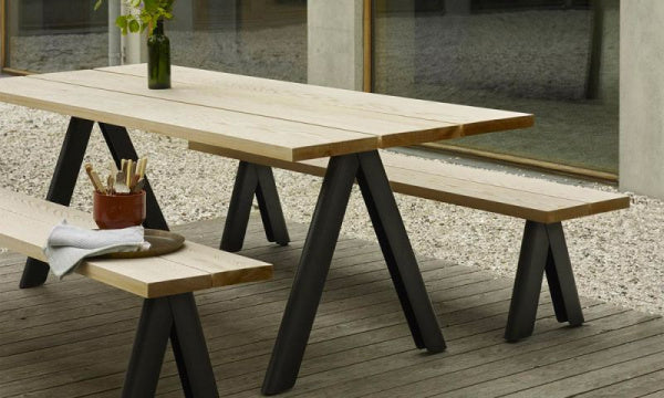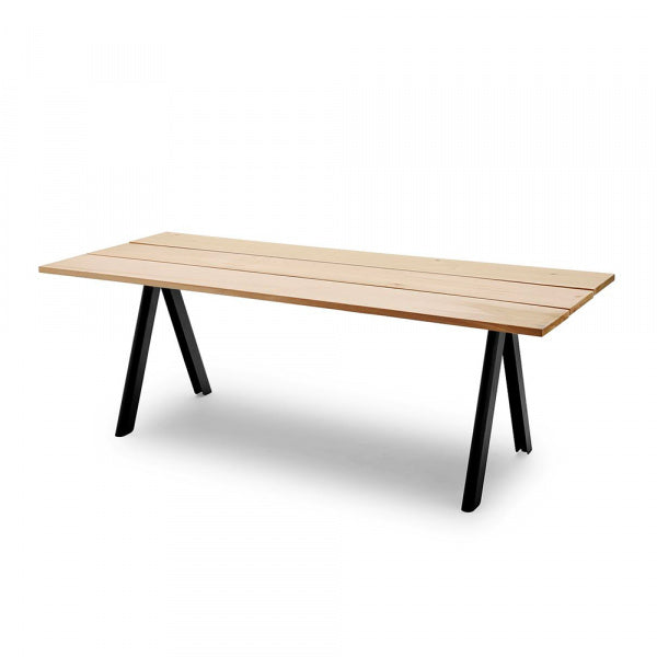 オーバーラップテーブルは、ストックホルムを拠点とするデザインスタジオTAFによるデザイン。重なり合うスチールの脚が力強く立つ、シンプルで高品質なテーブルです。天板は耐久性に優れたカナダ産ウエスタンレッドシダーを使用し、ハサミ刃から着想を得たスチール脚とのコントラストが、このテーブルにモダンな印象と現代的な魅力を与えています。屋内・屋外どちらのシーンでもご使用いただけます。【2017年デザイン】