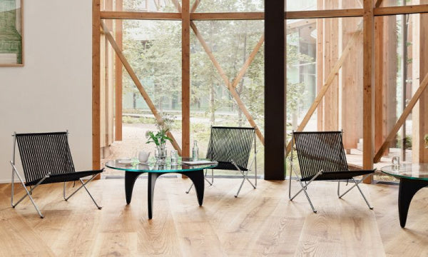 圧倒的な美しさが目を引くPK4は、モダンでリラックス感あふれるラウンジチェアです。ポール・ケアホルムがデザインしたこのラウンジチェアは、スチールと麻ひもが生み出す軽やかでミニマルな表情とともに、ケアホルムのデザインならではの洗練されたオーラを放ちます。1本の長い麻ひもと7本のスチールパイプという2種類の素材で作られており、スチールパイプを溶接することで、一体型のフレームが実現しました。PK4は、幾何学に対するケアホルムの飽くなき探究心を示す初期の名作であり、まさにアートとデザインを結びつけようとしたケアホルムの先見性に満ちたアプローチを体現するプロダクトです。1952年にデザインされたこのラウンジチェアは、もともとは家族や友人のための数量のみ作られました。強度と座り心地は改良されより快適に、脚の仕様はブラック粉体塗装とサテン仕上げでお選びいただけ様々なインテリアに合わせやすくなっています。オーガニックで彫刻的な形は単独でステイトメントピースとしてもおすすめです。ポール・ケアホルムのラウンジチェアコレクションは、PK4の復刻によって勢ぞろいします。デンマークのFRITZ HANSEN(フリッツ・ハンセン)社の商品です。【1952年デザイン】
