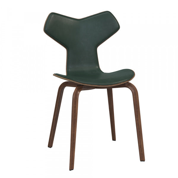 GRAND PRIX チェア ウォルナット フロントパディング ピュアレザーグリーン ウッド脚