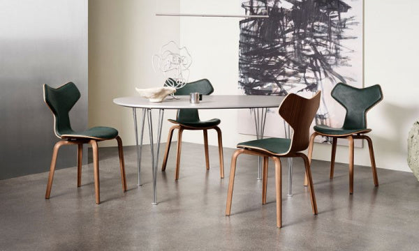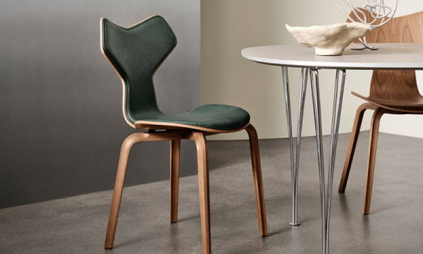 深みのあるフォレストグリーンのレザーとウォルナットを基調とした、限定のグランプリチェア。ミラノ・トリエンナーレの最高賞に輝いたコンテンポラリーなデザインが住空間に個性を添えます。1957年に誕生して以来、世界中で高い評価を得たグランプリチェアは、大胆なモダンデザインとして歴史を誇る、印象的な輪郭が特徴の名作椅子です。ウッドレッグ仕様のグランプリチェアは、スタッキングできません。デンマークのFRITZ HANSEN(フリッツ・ハンセン)社の商品です。【1958年デザイン】