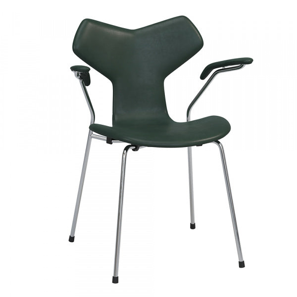 GRAND PRIX チェア アーム付 フルパディング ピュアレザーグリーン クローム脚