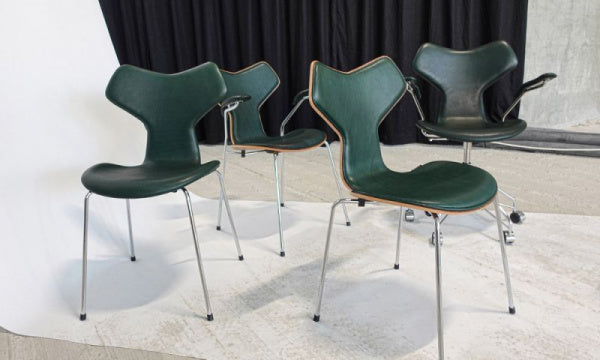 深みのあるフォレストグリーンのレザーとウォルナットを基調とした、限定のグランプリチェア。ミラノ・トリエンナーレの最高賞に輝いたコンテンポラリーなデザインが住空間に個性を添えます。1957年に誕生して以来、世界中で高い評価を得たグランプリチェアは、大胆なモダンデザインとして歴史を誇る、印象的な輪郭が特徴の名作椅子です。スチールベースのグランプリチェアには、スチールパイプ製ベースと成形合板でお馴染みのスタッキングチェアのコレクションの世界観が投影されています。デンマークのFRITZ HANSEN(フリッツ・ハンセン)社の商品です。【1958年デザイン】