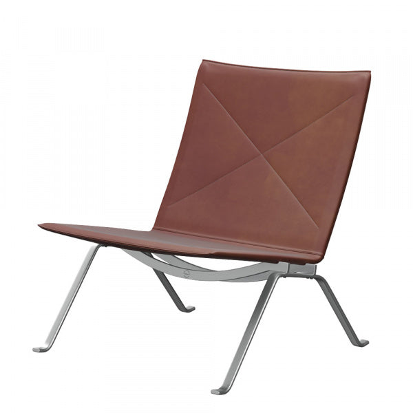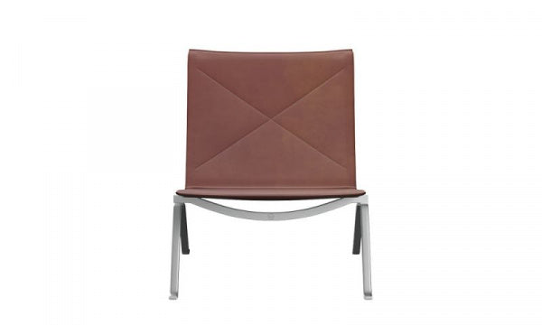ポール・ケアホルムは近代建築の巨匠ミース・ファン・デル・ローエに大きな影響を受けていました。「PK22」はローエの傑作チェア「バルセロナチェア」を超えるべくデザインされたそうです。4片のスチールは、シート面の下の二重のクロスビームで2つの平行した面に接合されています。PK25とは異なり、シート前部分の硬い縁に煩わされることなく、身体を休めることができます。凸状の曲線の座面と凹状の曲線の背面は、ケアホルム作品によくみられる主題となりました。無駄を削ぎ落とした機能美は多くの反響を得て、1957年のミラノ・トリエンナーレでグランプリを獲得。時代を超える名作として知られています。グレースレザーは、最上級の生皮を使用したフリッツ・ハンセン屈指の美しいレザーです。個性あふれる唯一無二の模様、柔らかな手触り、特別な外見が特徴的です。未加工の自然な表面は色によって異なり、時間の経過とともに美しい自然なツヤが生まれます。通気性に優れているだけでなく使い心地も良いこのフルグレイン(アニリン)レザーは、家具のデザインにタイムレスなラグジュアリー感を添えます。デンマークのFRITZ HANSEN(フリッツ・ハンセン)社の商品です。【1956年デザイン】