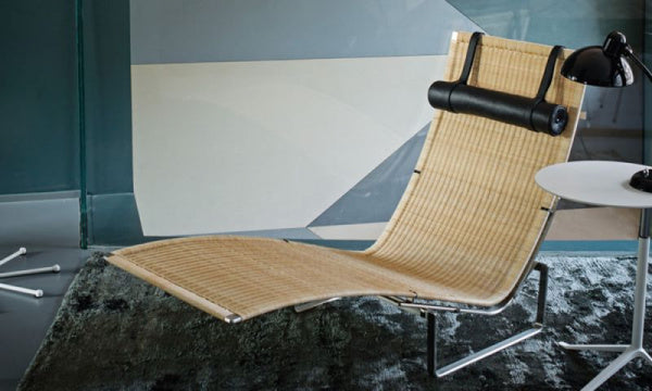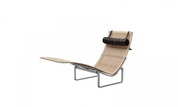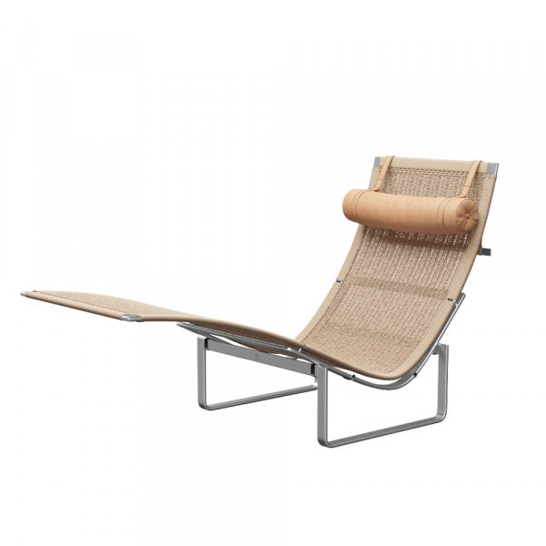 PK24 ラウンジチェアは、ポール・ケアホルムの作品として最も認識し易いチェアだといえます。ロココ時代やフランス式の長椅子からインスピレーションを得てデザインされたPK24 の有機的で流れるようなフォルムを、ケアホルムはスチールを用いて実現しました。彼はこのチェアが2点の間に身体をつり下げることで機能することから「ハンモックチェア」と名付けました。ヘッドレストは取り外し可能です。デンマークのFRITZ HANSEN(フリッツ・ハンセン)社の商品です。【1965年デザイン】