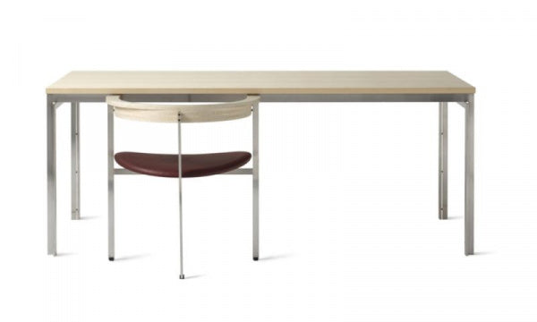 PK55 は、1957年にポール・ケアホルムによって制作されたアイコニックな長方形のワークテーブルです。アッシュ材のナチュラルウッドのテーブルトップと、サテン仕上げステンレススチール製のベースが特徴のPK55 は、 PK51 の小さなサイズのモデルとして発表されました。コの字型に形成された4つのパーツをねじで固定します。デンマークのFRITZ HANSEN(フリッツ・ハンセン)社の商品です。【1957年デザイン】