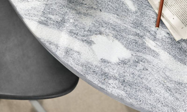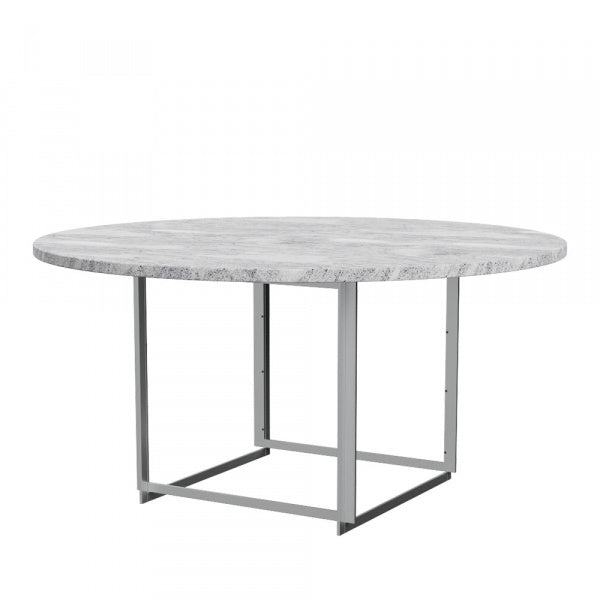 PK54 は、PK9 と共に自邸のダイニング用にデザインされました。脚部はスチール製のフレームを立体的に組み合わせています。円と正方形、大理石と鉱物の組み合わせ、見る度に新しい表情を見せてくれます。テーブルトップはイタリア産の大理石です。繊細な表情のテーブルトップは、あらゆる空間で自然に視線を集めます。ポール・ケアホルムの対照的な素材と形に対する探求心が見られるダイニングテーブルです。デンマークのFRITZ HANSEN(フリッツ・ハンセン)社の商品です。【1963年デザイン】