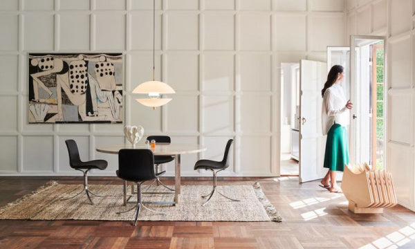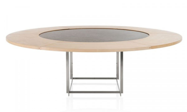 PK54 を拡張したい人へのユニークなソリューションです。通常6人まで快適に座れる PK54 ですが、木製のエクステンションパネルを取り付けることで、最大12名まで使用できます。石と木、ハードとソフト。石のテーブルトップに木製の延長テーブルを組み合わせることで、テーブルの外観はまったく新しいものになります。PK54A は、プレートを並べてのテーブルセッティングや、インテリアデザインの美しいアクセントに最適なエクステンションパネルです。デンマークのFRITZ HANSEN(フリッツ・ハンセン)社の商品です。【1963年デザイン】