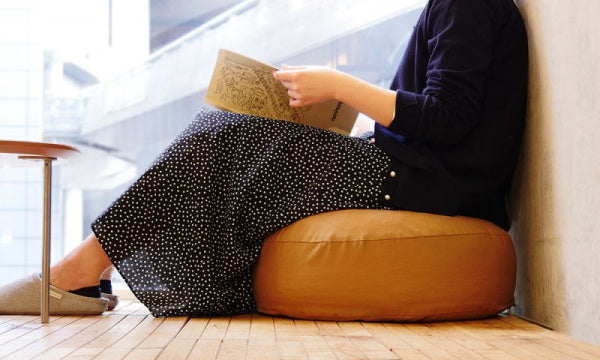 「低く座す暮らし」をテーマにつくられた少し硬めのクッションチェアは、床座のくつろぎスタイルに最適です。カバーは梳毛(ソモウ)糸で織り上げた軽やかで丈夫な生地。それは、トップ染めによる美しい色合い、上品な光沢を放つとともにストレッチ、ウォッシャブル、防シワ性も兼ね備えています。また、廃棄された生地や製品を回収し、分解、生成したサステナブルなリサイクルポリエステルが含まれています。中材は体の形に馴染み、長く使ってもほとんどつぶれない特殊ビーズを使用しています。