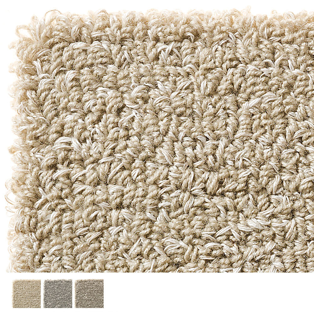 ベースとなるウールに光沢のあるポリエステル糸を散りばめ、さらにナチュラルなリネンをミックスした本製品は大理石の床を感じさせるオリジナリティあふれるものとなりました。13mmの高密度な厚手のループとすることで重厚感が加わり、クッション性にも富んでいます。