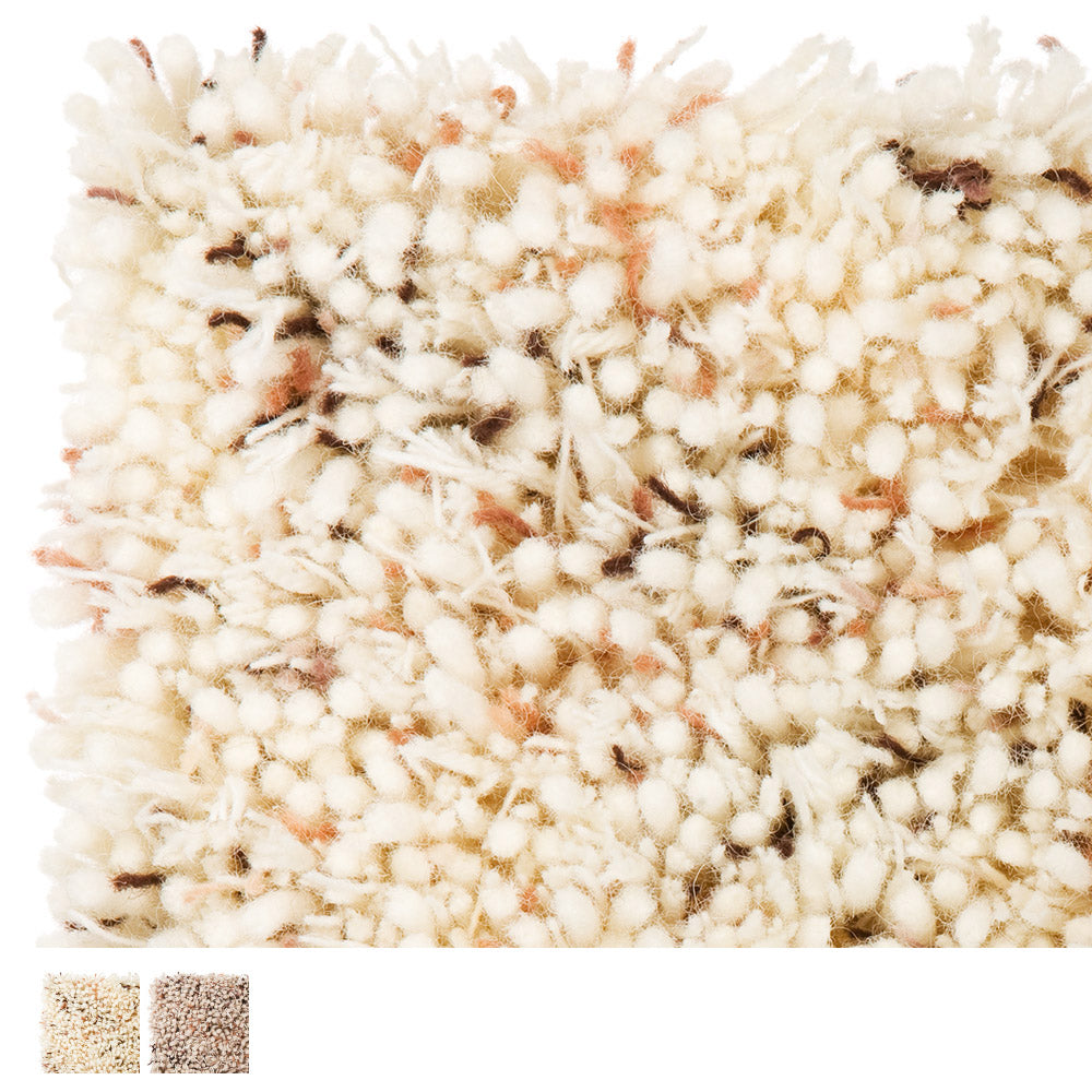 ソフト感の強いフェルト糸と糸に間隔をおいて多色染めしたスペースダイ糸を組み合わせたランダム感のある製品。一見「鳥の巣」のようにも見え、ナチュラルで落ち着いた雰囲気があります。フェルト糸の弾力性が強いため、フワッとした柔らかな踏み心地です。(54000円+税/1平方メートル)