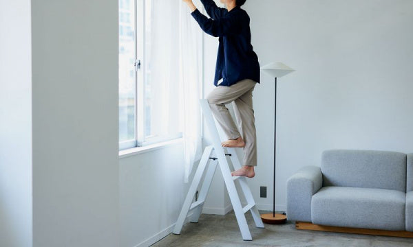 道具としての踏台から空間調和の踏台へ。lucanoコンセプトを継承しながら、さらに高い作業が安全にできる3段タイプを考えました。上への伸びたハンドルは、昇降時の手摺りとなり、さらに安全性を高めました。より簡単により安全に取り扱えるようにワンタッチバーを搭載しました。耐荷重:100kg【2009年 グッドデザイン賞受賞】【2010年 ドイツ・レッドドットデザイン賞 ベスト・オブ・ザ・ベスト】