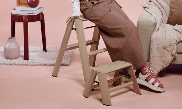 「隠さなくて良い脚立」をコンセプトに開発されたルカーノは、自立機能により置き場所を選ばず、片付ける必要がありません。使いたいときにサッと開いて使える手軽さと、どこに置いても空間に調和する洗練されたデザインが美しい脚立です。定番のブラック、ホワイトに加え、お部屋のアクセントとしても楽しめる4色のペールカラーがございます。※耐荷重100kg【2009年 グッドデザイン賞受賞】【2010年 ドイツ・レッドドットデザイン賞 ベスト・オブ・ザ・ベスト】