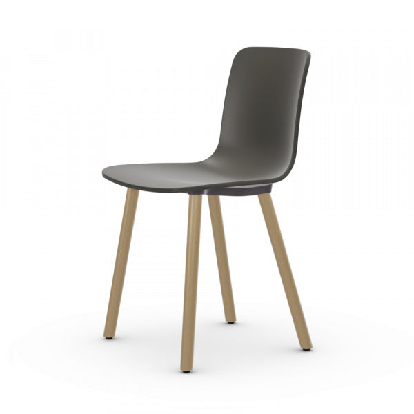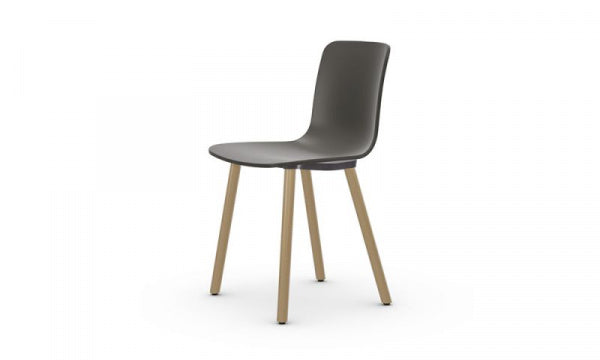 ジャスパー・モリソンは、イームズのデザインに代表されるシェルチェアの現代における可能性を改めて再考し、ハルチェアの洗練されたデザインを生み出しました。「スーパーノーマル」を体現したかのような主張し過ぎないシンプルなフォルムと、暮らしやオフィスなどあらゆる場面に対応する実用性を兼ね備えたプラスチックの一体成型シェルが、ハルチェアと一連のシリーズ、ハルファミリーの最大の特徴です。「ハル ウッド」はジャスパー・モリソンによるハルファミリーのひとつで、柔軟性のある再生プラスチック製のシェルと木製の脚の組み合わせが特徴的です。快適なシートシェルは8色から選択できます。