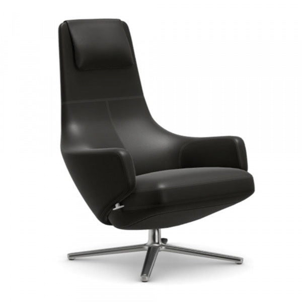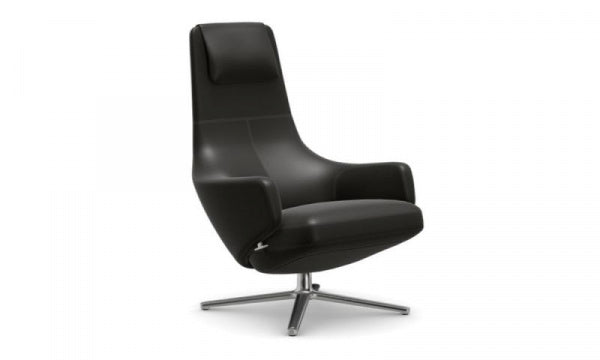 背もたれには、ヴィトラのオフィスチェアに採用されているシンクロナイズドメカニズムが組み込まれているため、座る人が最も心地よく感じる位置にリクライニングを調整できます。また、リクライニングした状態をキープすることも可能です。座面は回転するため、常に向きたい方向へ視界を変えることができます。2022年にアップデートしたグランレポ。内部に使用しているプラスティックは95%再生プラスティックになり、カバーの張替えも可能になりました。(Vitraの専門業者のみ)また、球面のウレタン部分に厚みを持たせたことにより腰部分のクッション性が増し、より座り心地がよくなりました。リクライニングしながら、別売りの「オットマン」や「パンチーナ」に脚を載せることで、さらに快適な座り心地を実現できます。「Leather Natural F(レザー ナチュラル)」は、非常に柔らかい牛革で温かみのある手触りが特徴で、4色からお選びいただけます。