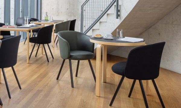 究極に心地よい椅子を目指し開発された「ミカド」は、ダイニングでも会議室でも、場所を選ばないチェアです。座面下に隠された独創的でシンプルなメカニズムにより、背もたれをわずかにリクライニングさせることができます。豊富で多彩な張地とレッグのバリエーションから選ぶことができます。身体を包み込むようなアームチェアとすっきりとした背もたれのサイドチェアの2つのモデルがあります。長く使えるよう、クリーニングやメンテナンスのためのカバーやレッグの交換が可能です。